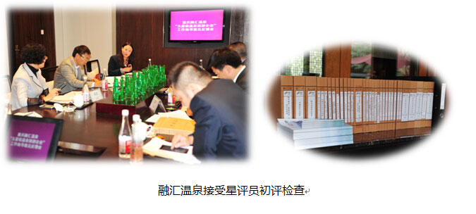2015年3月21日-22日,融汇温泉迎接了来自全国温泉旅游企业评定委员会的委派的三名国家级星评员和旅游局领导的评定检查。情况说明会上,融汇温泉总经理姜涛先生做了详尽的陈述报告。包括了项目概况、创星工作开展情况及对标检查情况、管理及经营、经营情况、历年荣誉等方面内容,并着重展开讲解了我司在质量战略、品牌建设和客户管理方面所做的努力与成果。